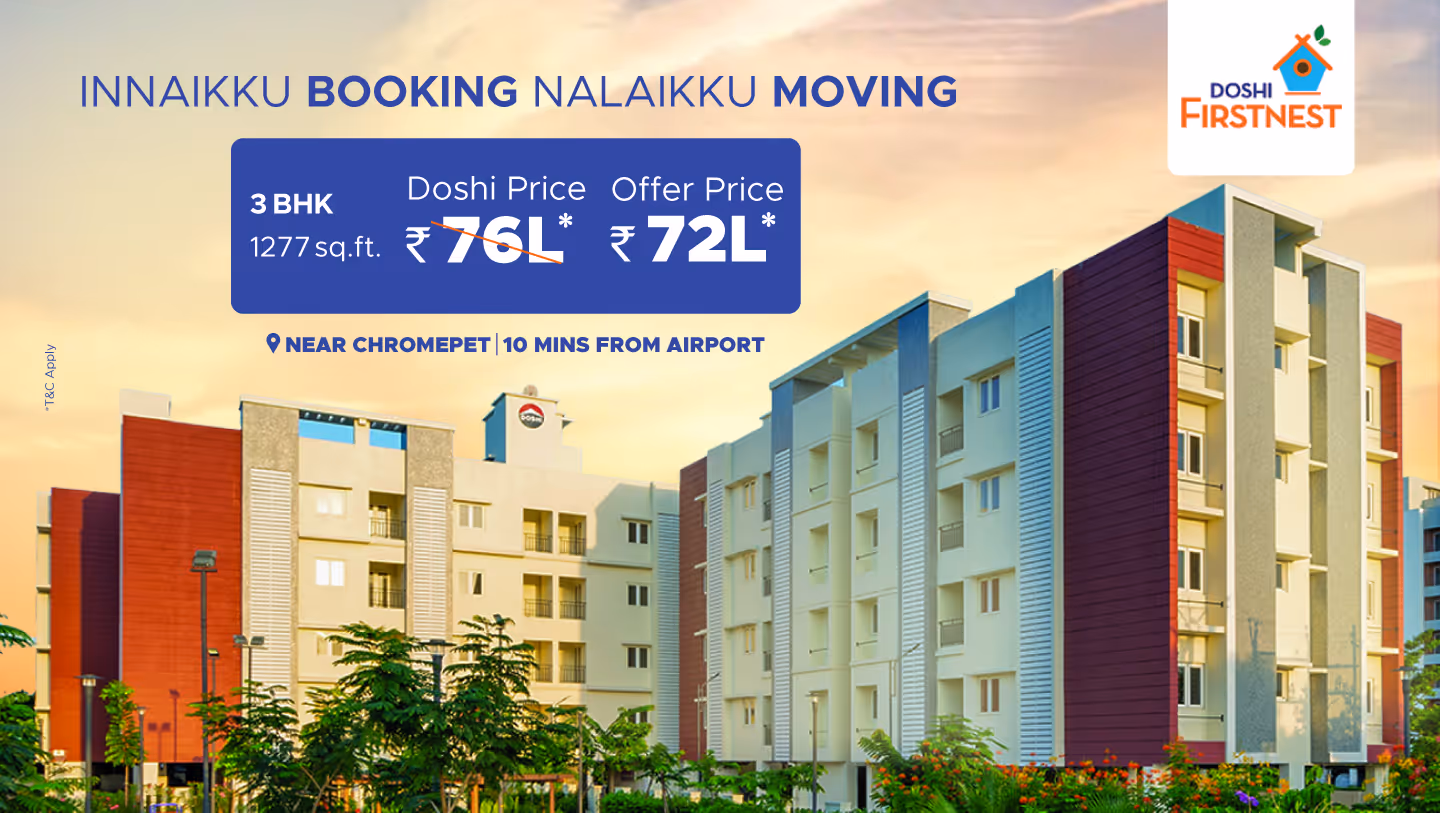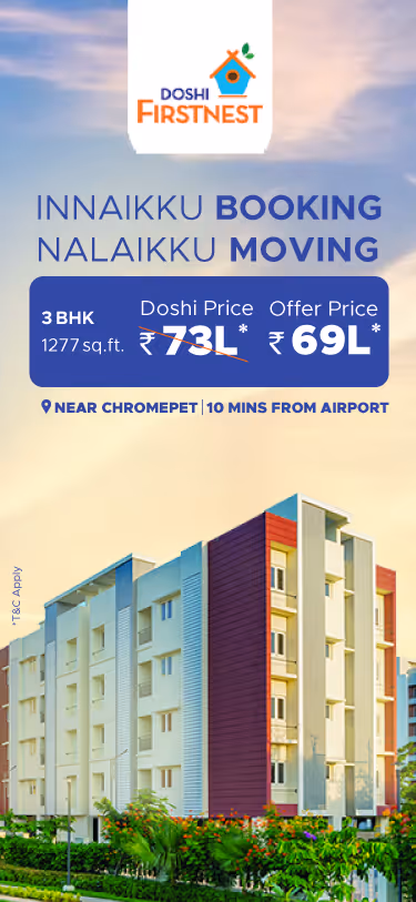 For over four decades, Doshi Housing has shaped Chennai’s skyline and made a name for transparency, excellent value, and customer service. Our benchmark is always to deliver more than what we promise. We consistently deliver top value, within the promised timelines, with no deviations. Isn’t it time you got to know us?